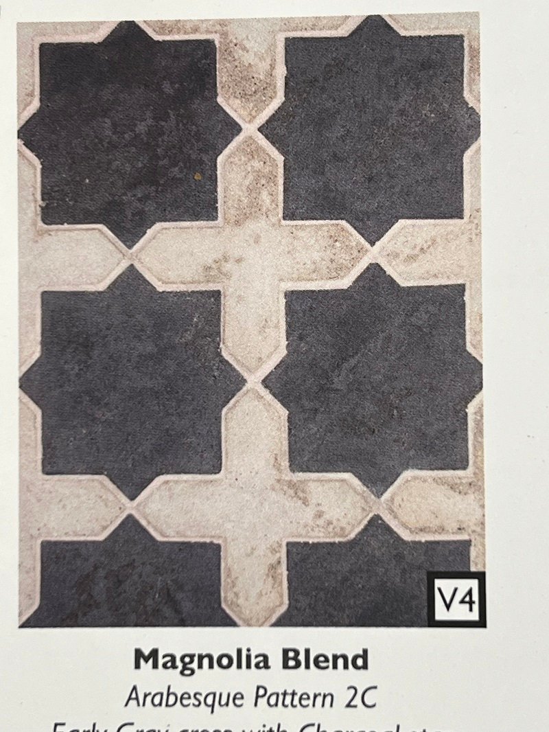 Cement Tiles are made of concrete and the color in the pattern comes from mineral pigments which are mixed and poured into a mold. Usually about 3/32” thick. The mold is removed and the gray cement is fills the rest of the tile body to about 5/8” thick. The tile is then hydraulically pressed and is cured for about three weeks. This method was developed in the mid-19th century and is the same method we now use. Most of our Encaustic Tiles are designed by The Tile District.